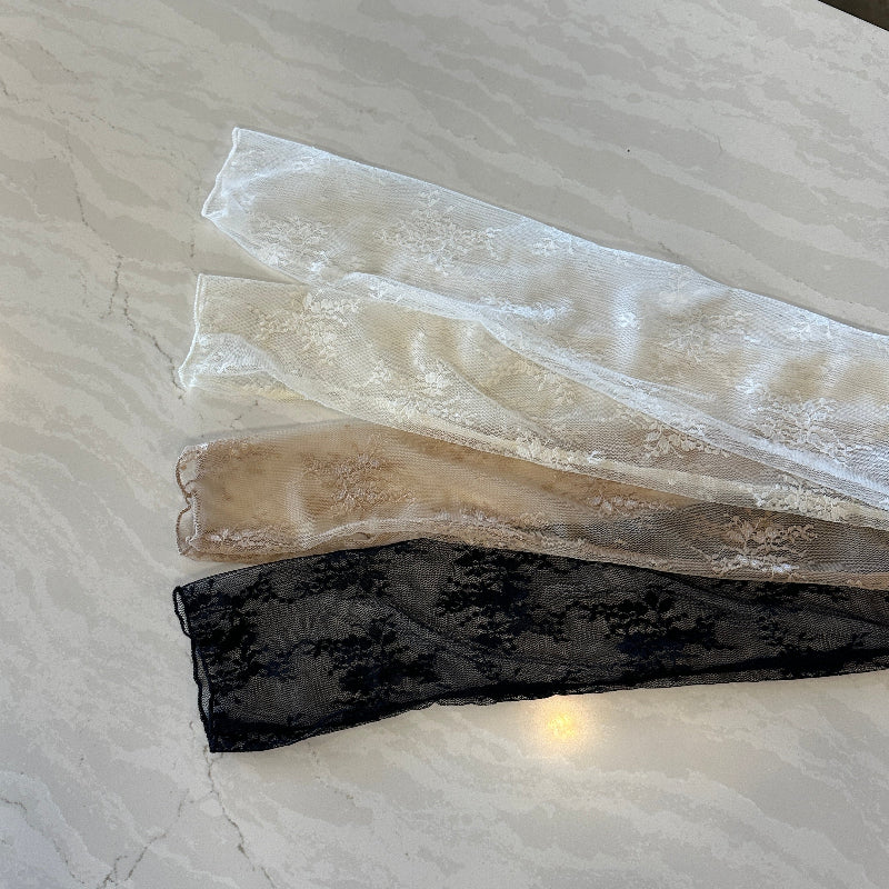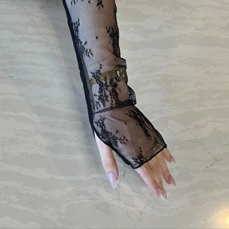 Mesh lace long-sleeve top. High Neck, full length, long sleeves, thumb holes. Great for layering!